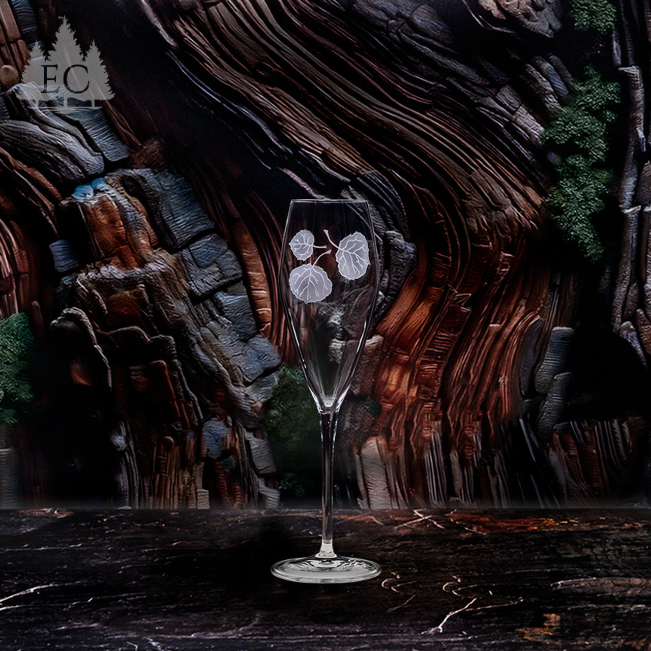 Toast to special occasions with a touch of nature's elegance with our stunning set of 2 Aspen Leaves Champagne Flutes. Crafted from fine crystal for exceptional clarity and brilliance, these flutes feature a delicate, wrap-around etching by Lorraine Coyle depicting the shimmering leaves of aspen trees.